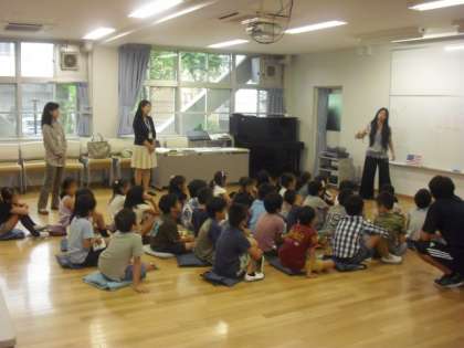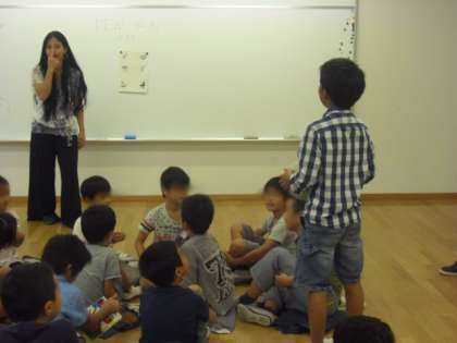 子どもたちは、デーウィ先生、ボランティアの方お二人、担任の先生と一緒に英語を楽しみました。