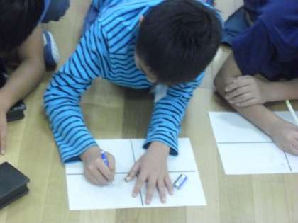 紙に絵を描いて好きな物や苦手なものの紹介もしました。英語が分からなくても心配ありません。