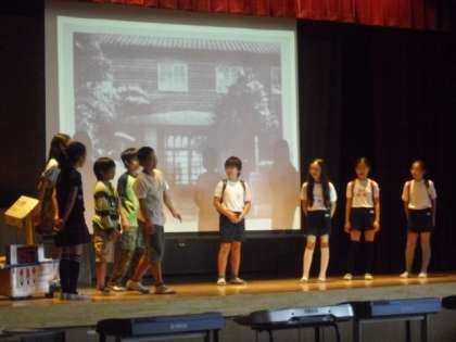 開校記念日集会は、計画委員会が中心となって行いました。各学級からのメッセージには「64歳のお誕生日おめでとう」「6年間今まで見守ってくれてありがとう」などがありました。合奏クラブの伴奏による全員合唱「すてきな友達」、タイムマシンに乗って過去に行きひがしの歴史を紹介する劇とクイズ、いつも以上に声が響いた「校歌」と「ひがしのなかま」の合唱と進んで行きました。子どもたちも、ひがしを大切に思いながら今日の開校記念日集会に参加しました。地域の方々もご出席くださいました。とても気持ちのこもったすてきな集会になりました。