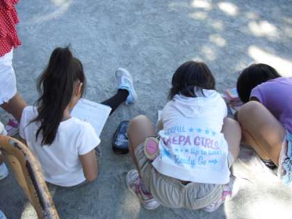 早速4年生は月の観察。月の位置はどこにあるかを発見カードに記入しました。