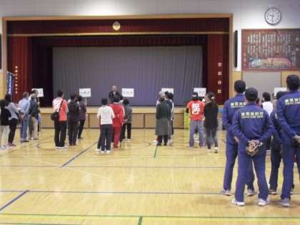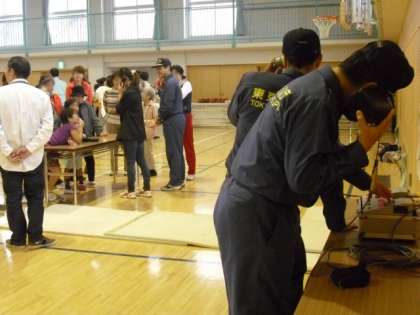 あいにくの雨天でしたが恒例の「東深沢町会 防災運動会」が、体育館で行われました。地域の方々や家族と一緒に子どもたちも参加していました。