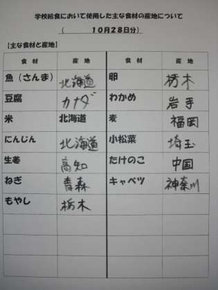 10/28 今日の給食