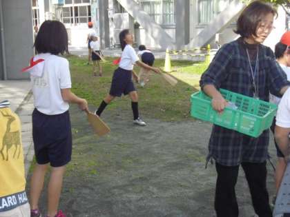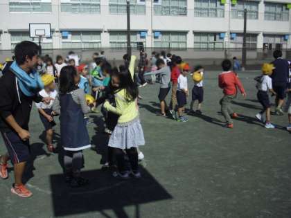 中休みは、「共遊び」でした。先生方が紹介する遊びのコーナーを、子どもたちが選んで楽しむ時間です。