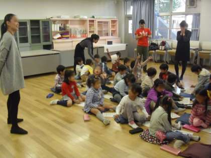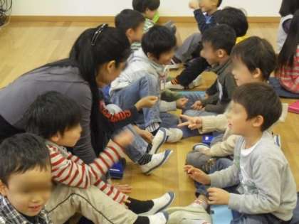 次に、1から9までで「ビンゴ」です。「ビンゴ!!」という子どもたちのうれしそうな声が視聴覚室に響きました。