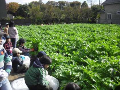 台風の影響で、大根が育たず一度は中止の決定をした大根抜き。秋山農園の皆さんや自然体験学習室の皆さんのおかげで、大根抜きを行うことになりました。