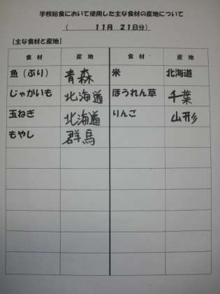 11/21 今日の給食