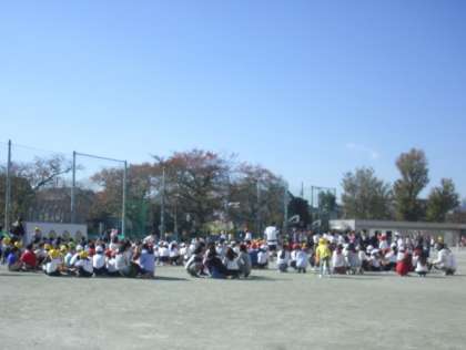 中休みの最中に、避難訓練の放送(地震)がありました。校庭で遊んでいた子どもたちは、校庭の中央に集まり教室にいた子どもたちは机の下にもぐり、次の指示を待ちました。そして、理科室から出火した想定で、チャボ小屋の近辺に集合しました。