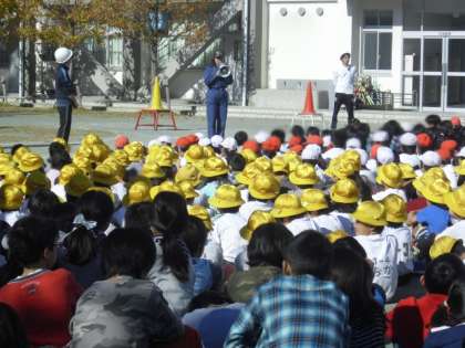 今回は、玉川消防署新町出張所からお2人、指導にいらしてくださいました。集合してからは、とても静かにお話を聞けたとおほめの言葉をいただきました。
