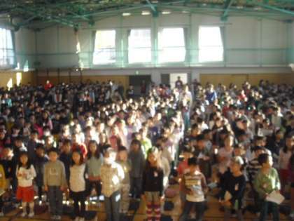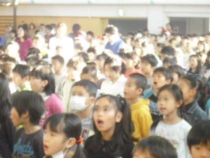 今朝は、音楽朝会です。体育館に響き渡る歌声、さわやかに一日が始まります。