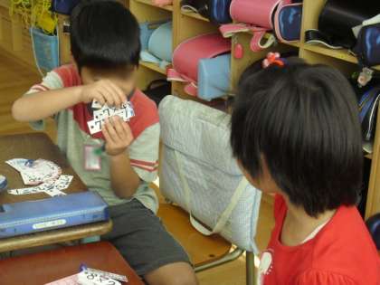 7の段を使ってカレンダーの問題を解くなど、生活の中で活用することができることもしっかりと学んでいきます。また、カードを使って暗唱したり、お友達同士で問題を出し合ったりしながら繰り返し練習し、身につけていきます。