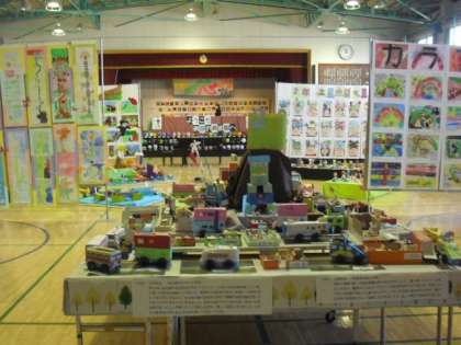 さらに、明日は14:00と15:00に学校音楽支援コーディネーターの企画による生演奏・合唱も予定しています。明日の午後は、ぜひお子さんと一緒に平面作品や、立体作品、音楽などを楽しんでいただき、お子さんを大いにほめていただければと思います。お待ちしています。