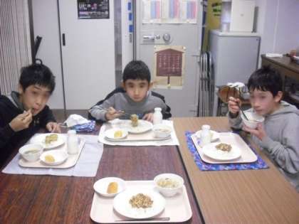 今日は、予定していた6年生の体調が芳しくないこともあって、3人の男の子との会食になりました。日光の話や遊びの話、結構盛り上がって楽しかったです。