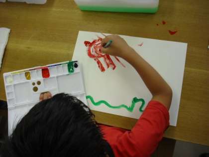 絵の具を使って楽しく色を塗れてみんな満足です。