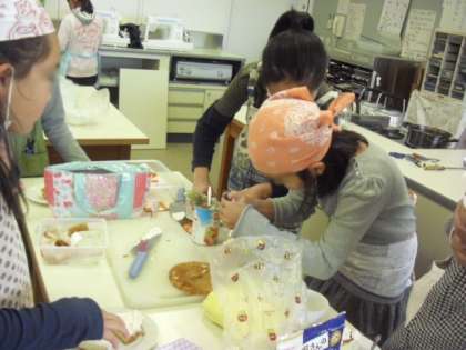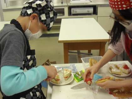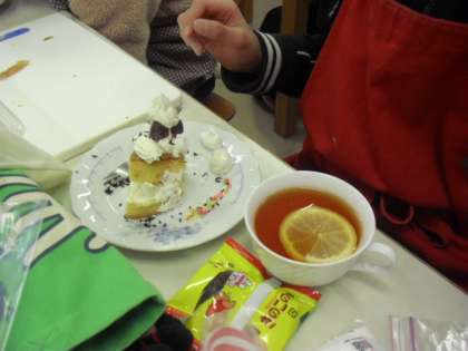 手芸・料理クラブでは、学期に一度のお楽しみの料理でした。今日はデコレーションケーキです。グループで協力し合いながら、思い思いのデコレーション・トッピングをして仕上げました。自分で作ったケーキの味は格別だったようです。家庭科室いっぱいにいい香りと笑顔があふれました。