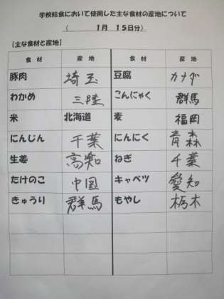 1/15 今日の給食