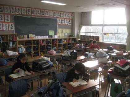 インフルエンザなどが流行していますので、体調の優れない子どもたちは外で見学ではなく、教室で読書にしました。