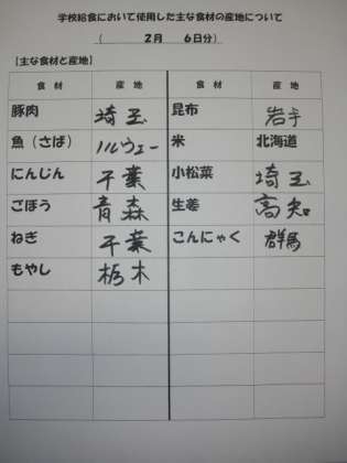 2/6 今日の給食