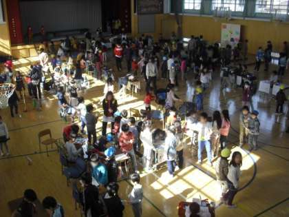 紙芝居のお店や、ゲームを楽しむお店、物を作るお店など、様々なお店を出しました。