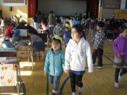 案内する2年生は、保育園のお友達と手をつなぎ、優しく声をかけながら案内をしました。お店の1年生も丁寧に遊び方の説明をしていました。