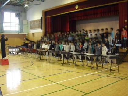 4年生は、2分の1成人式で自分たちの成長を振り返り、育ててくださった方々への感謝の気持ちを伝えようと準備を進めてきました。1時間目は、学年全体で呼びかけと合奏「喜びの行進」合唱「未来見つめて」を行いました。練習を積み重ね、心を一つにしたすばらしい演奏に感動しました。保護者の方々に気持ちを伝えることができ、子どもたちもすてきな笑顔を見せていました。