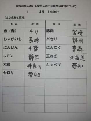 2/14 今日の給食