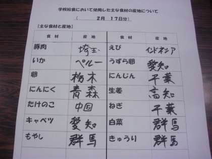 2/17 今日の給食