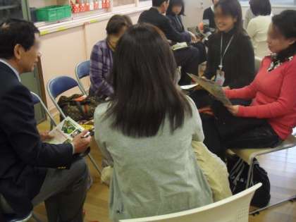 次に、参加者が九つのグループに分かれて「子どもへの携帯電話・スマートホンの持たせ方」について協議を行いました。皆さんから活発なご意見が出され、時間がたりないほどでした。