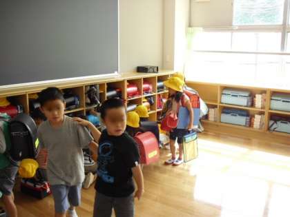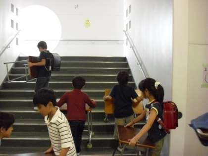 3,4年生は、自分で机も椅子も荷物も運びます。一人で運ぶ子、友達と一緒に運ぶ子とさまざまですが、一生懸命働きました。