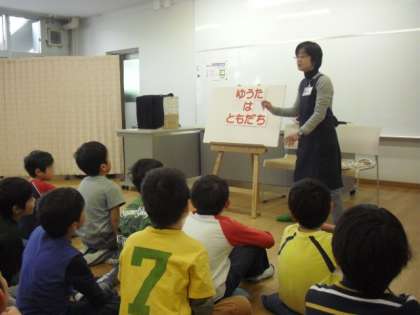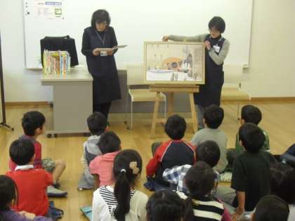 今日は、深沢図書館の方々による「出張おはなし会」がありました。パネルシアターや大型絵本「おおきなもののすきなおうさま」などを読んでくださり、楽しい充実した時間を過ごすことができました。また、誰もが知っている日本昔話「ももたろう」は、作者によってお話の内容が違うことを紹介してくださいました。深沢図書館の方々には、子どもたちのために企画や準備をしていただき感謝しています。今後も、朝読書の時間やお家での読書など、本に親しんでいきます。