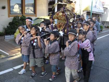 子どもみこしが、エーダン商店街から東深沢町会と深沢1丁目を巡りました。
