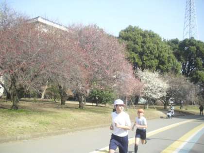 開会式後、女子の1500mです。コースの途中には紅白の梅がきれいに咲いているところもありました。
