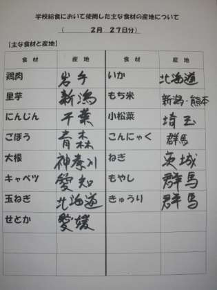 2/27 今日の給食
