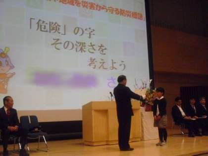 表彰式の最後は舞台に上げていただいて集合写真です。