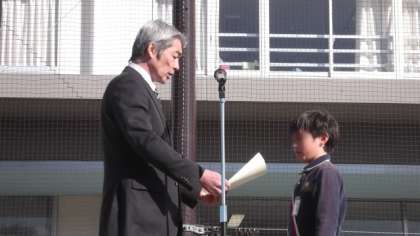 さて、今日も表彰を行うことができました。書道で金賞をいただいたお友達です。おめでとう。