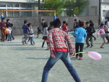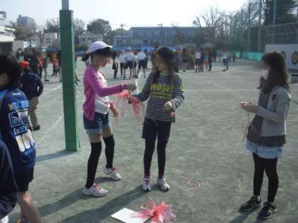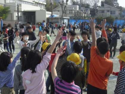 みんなで楽しく遊んだ後は、5年生を中心に集まって、6年生への感謝の気持ちも込めてあいさつをしました。