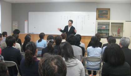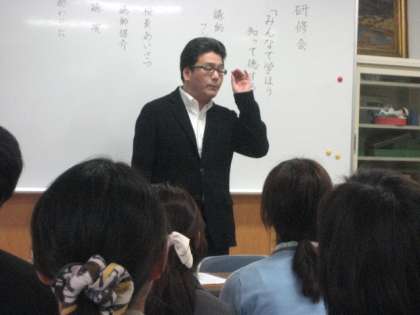 午後3時30分から、フジテレビの軽部真一アナウンサーを講師に迎え、教職員を対象とした話し方研修会を行うことができました。