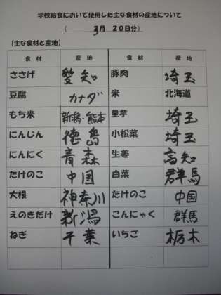 この1年間、栄養士の飯野さん、そして調理師さんたちが、美味しい給食を作ってくださいました。子どもたちが給食を食べる様子も、教室までよく見に行ってくださっていました。ありがとうございました。4月からもよろしくお願いします。