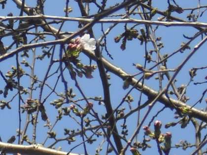 6年生を祝うかのように、桜の花が開きました。バス通り沿いのひがしの桜です。
