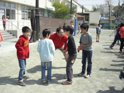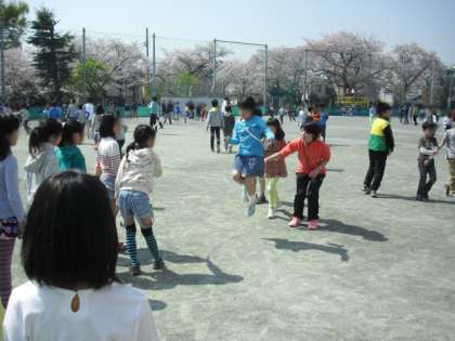 新しい担任の先生も子どもたちと一緒に外遊びを楽しんでいます。