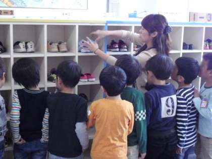 靴箱の使い方も勉強しました。かかとをそろえてきれいに入れることは、みしまの森学舎三校(東深沢中学校・等々力小学校・東深沢小学校)で取り組んでいます。