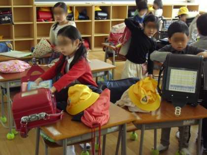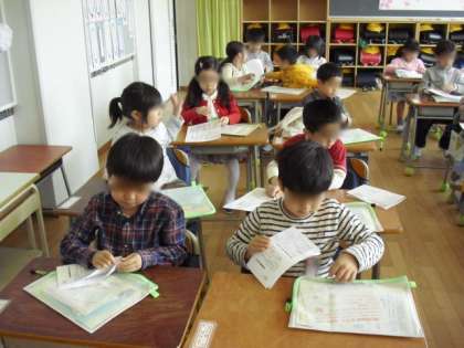 金曜日は、上履きや体育着など持ち帰るものが多く大変です。でも、ご家庭へのお知らせのプリントをさっとしまい、ランドセルの準備も素早くできました。これだけを見ても1週間の成長を感じます。
