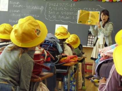 早く準備ができたので、担任の先生に読み聞かせをしていただいているクラスもありました。