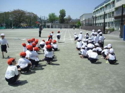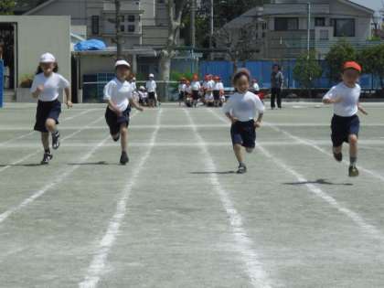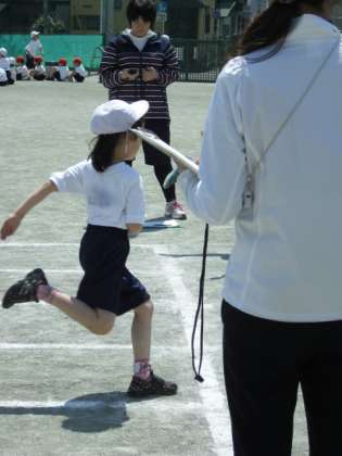 1年生は、「自分のレーンを真っ直ぐ走ること」「ゴールラインをしっかりと駆け抜けること」が大切です。