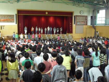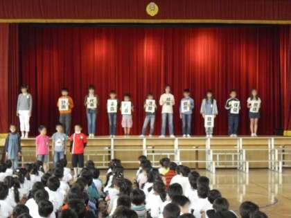 10の委員会が、仕事の内容やメンバーの紹介をしました。どの委員会の委員長もしっかり分かりやすく話すことができました。さすが委員長です。