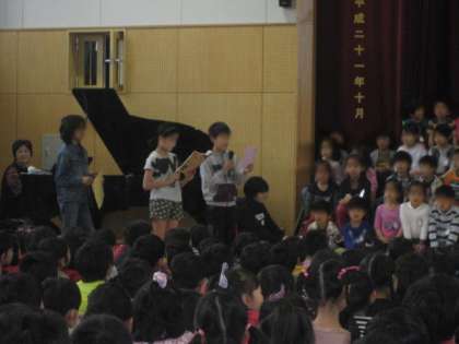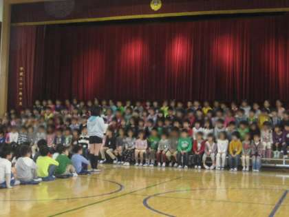 初めて1年生から6年生までが一緒の場所に集まる「1年生を迎える会」の日になりました。