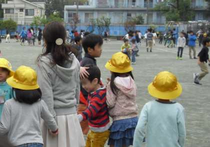 1年生同士で遊んでいたり、先生と遊んだり、上級生と一緒に遊んでいたりしました。6年生だけでなく、どの学年も1年生を遊びに入れてくれていました。そしてお互いに楽しんでいました。ひがしの上級生は、すばらしいです。