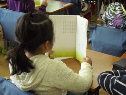 先生が読んでくださるのを聞いたり、先生の後に続いて読んだり、自分たちで読んだりします。風景を想像しながら、何度も何度も繰り返し読んで、詩を覚えてしまいます。自然と口をついて詩が出てくるようになるとすてきです。