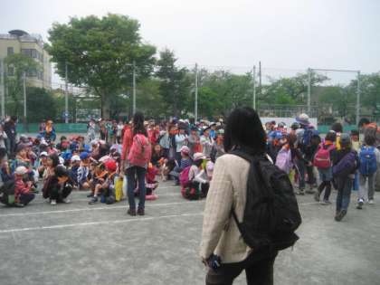 学校へ着いて、今日の遠足のことを確認し、それぞれの学級に