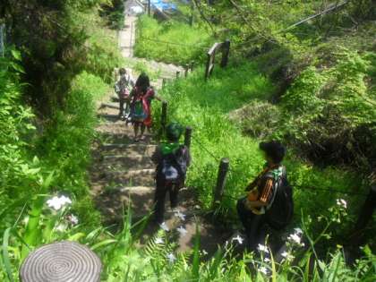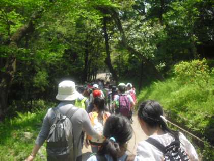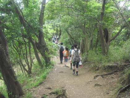 大仏ハイキングコースは、鶴岡八幡宮と同じ班のメンバーで歩きました。友達と楽しく話したり、「大丈夫?」「荷物持とうか?」と声をかけたりしながら、木々に囲まれた美しい自然の中を進んでいきました。険しい道でしたが、「なんか楽しい!!」と言いながら、友達と助け合いながら高徳院を目指します。