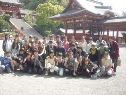 最初は、鶴岡八幡宮に行きました。クラスごとに写真を撮ってから、班ごとのウォークラリー開始です。